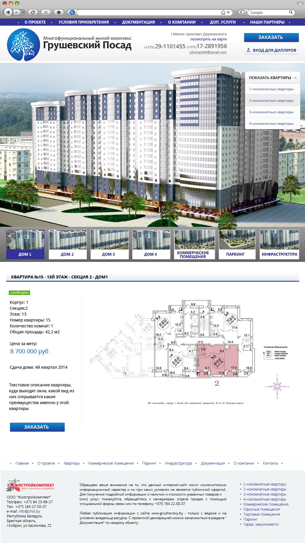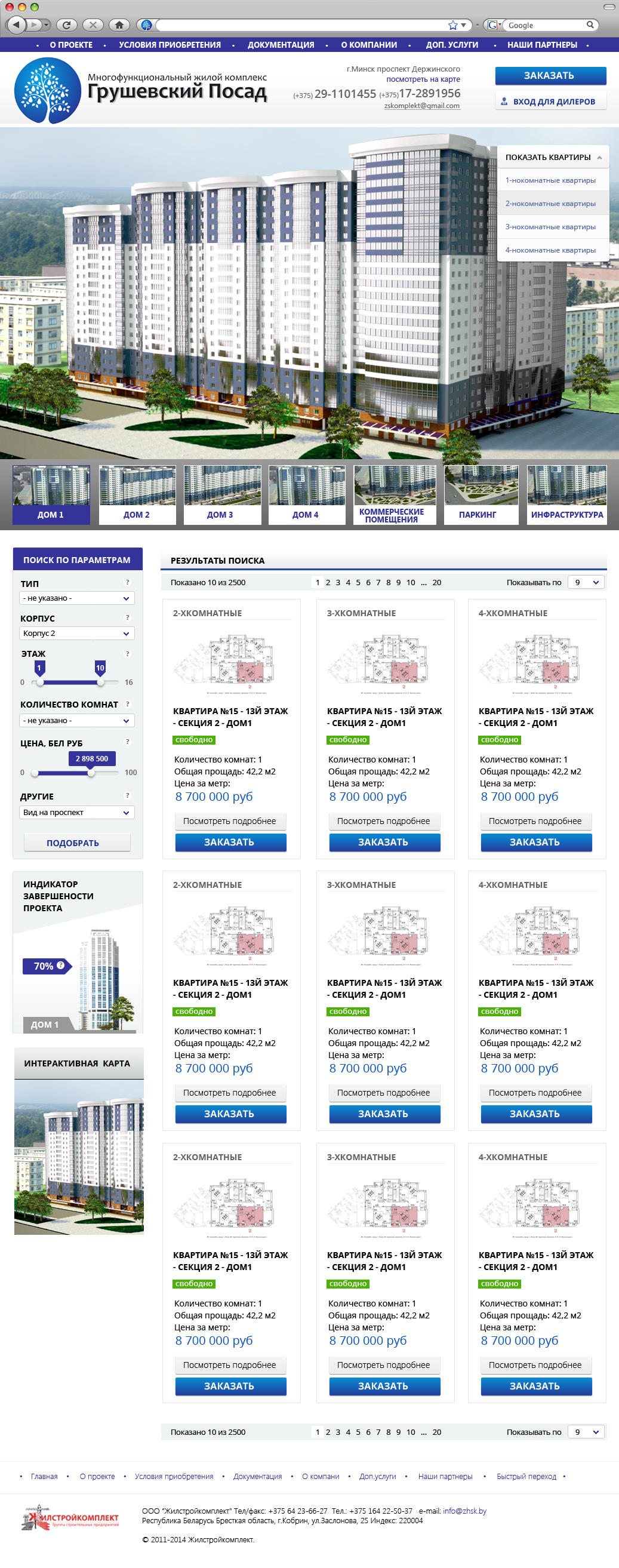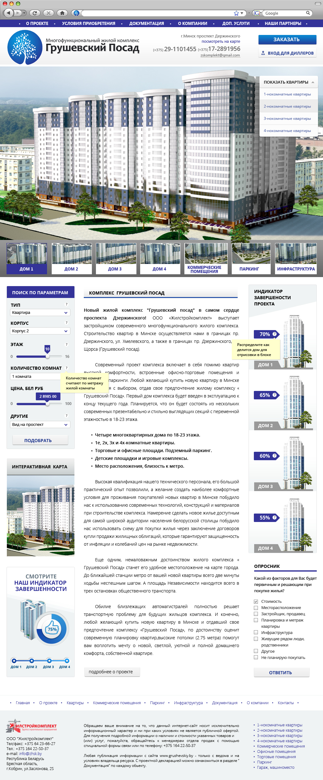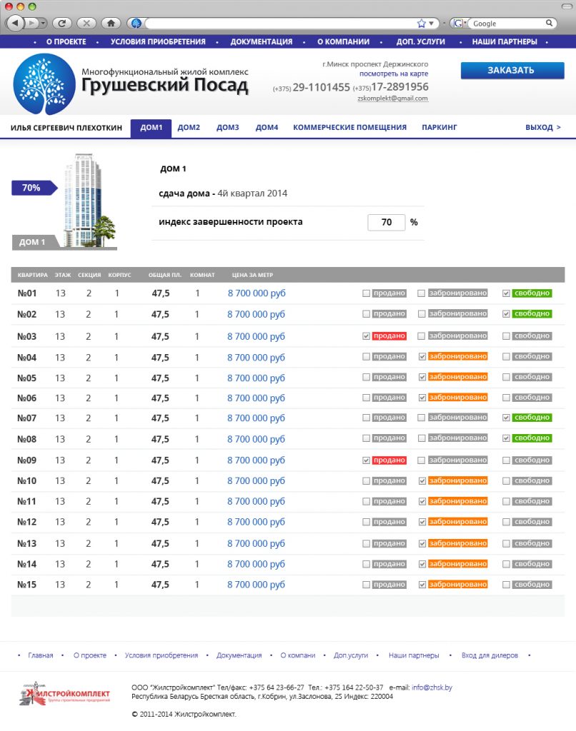 Описание: Разработка дизайна и создание первой версии сайта многофункционального жилого комплекса «Грушевский посад». Сайт включал удобную систему подбора и продажи квартир.